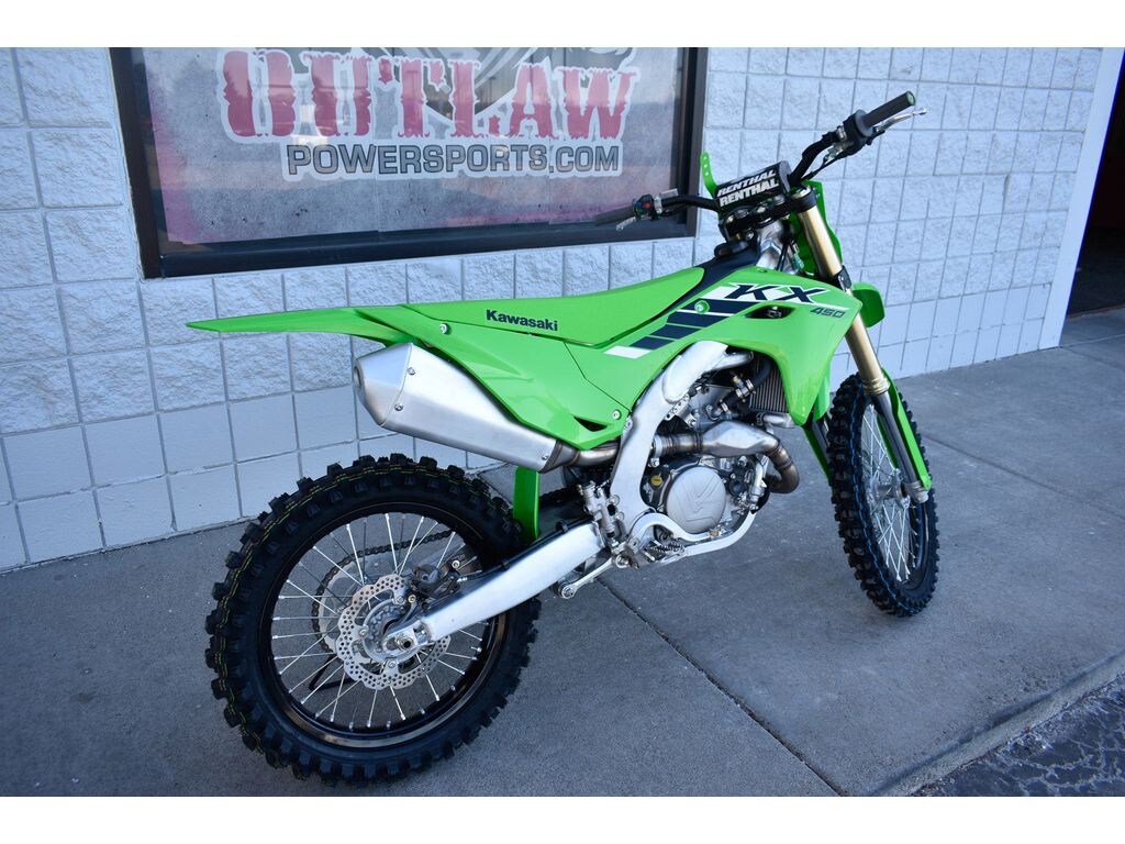 Equipped with cutting-edge technology, the Kawasaki KX450MSFNN includes a state-of-the-art traction control system and multiple riding modes, allowing you to customize your ride to match your skill level and track conditions. The aggressive styling and bold graphics make a statement, reflecting the bikeâs competitive spirit and Kawasakiâs legacy of performance.