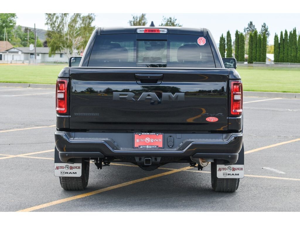 Big Horn Level 2 Equipment Group: Google Android Auto; USB Host Flip; Power Adjustable Pedals; Leather Wrapped Steering Wheel; Integrated Voice Command with Bluetooth; 12 Touchscreen Display; Glove Box Lamp; Auto Power-Folding Mirrors; 115V Auxiliary Rear Power Outlet; Media Hub with 2 Charge Only USBs; Heated Front Seats; Security Alarm; Black Premium Power Mirrors; Apple CarPlay; Premium Overhead Console; 9 Amplified Speakers with Subwoofer; Wireless Charging Pad; Remote Tailgate Release; 115V Auxiliary Power Outlet; LED Dome Lamp with On/off Switch; Universal Garage Door Opener; 2nd Row in Floor Storage Bins; Sun Visors with Illuminated Vanity Mirrors; LED Footwell Lighting; Power 2-Way Driver Lumbar Adjust; Rear Window Defroster; Rear View Auto Dim Mirror; Rear Power Sliding Window; Connectivity - US/Canada; GPS Navigation; 4G LTE Wi-Fi Hot Spot; GPS Antenna Input; Overhead LED Lamps; Exterior Mirrors with Heating Element; Auto Dim Exterior Driver Mirror; SiriusXM with 360L; Connected Travel and Traffic Services; Heated Steering Wheel; Black Exterior Mirrors; Configurable Drive Mode; 400W Inverter; HD Radio; Uconnect 5 Navigation with 12.0 Display Radio; Exterior Mirrors with Supplemental Signals; Exterior Mirrors Courtesy Lamps; Air Conditioning ATC with Dual Zone Control; Cluster 7.0 TFT Color Display; Power Adjust 8-Way Driver Seat; Convex Wide-Angle Exterior Mirror Insert. Night Edition: 275/55R20 OWL All Season Tires; Deluxe Cloth Bucket Seats; Accent Color Premium Power Mirrors; Exterior Mirrors with Supplemental Signals; Black Headlamp Bezels; Exterior Mirrors Courtesy Lamps; Grille Black Surround Black Mesh; Auto Power-Folding Mirrors; Exterior Mirrors with Heating Element; 20 X 9.0 Aluminum Painted Clad Wheels; Auto Dim Exterior Driver Mirror; Black Exterior Truck Badging; Anti-Spin Differential Rear Axle; Accent Color Door Handles; Black Interior Accents; Body Color Front Bumper; Convex Wide-Angle Exterior Mirror Insert; Body Color Rear Bumper with Step Pads; Black Tail Lamp Bezels; RAM Grille Badge - Black; Black Painted Exterior Mirrors Caps. Quick Order Package 23Z Big Horn: Big Horn Badge. 9 Amplified Speakers with Subwoofer. Deluxe Cloth Bucket Seats. Anti-Spin Differential Rear Axle. Trailer Brake Control. Cluster 12 TFT Color Display. Diamond Black Crystal PC. MOPAR Front and Rear Rubber Floor Mats. 3.55 Rear Axle Ratio. **Equipment listed is based on original vehicle build and subject to change. Please confirm the accuracy of the included equipment by calling the dealer prior to purchase.**