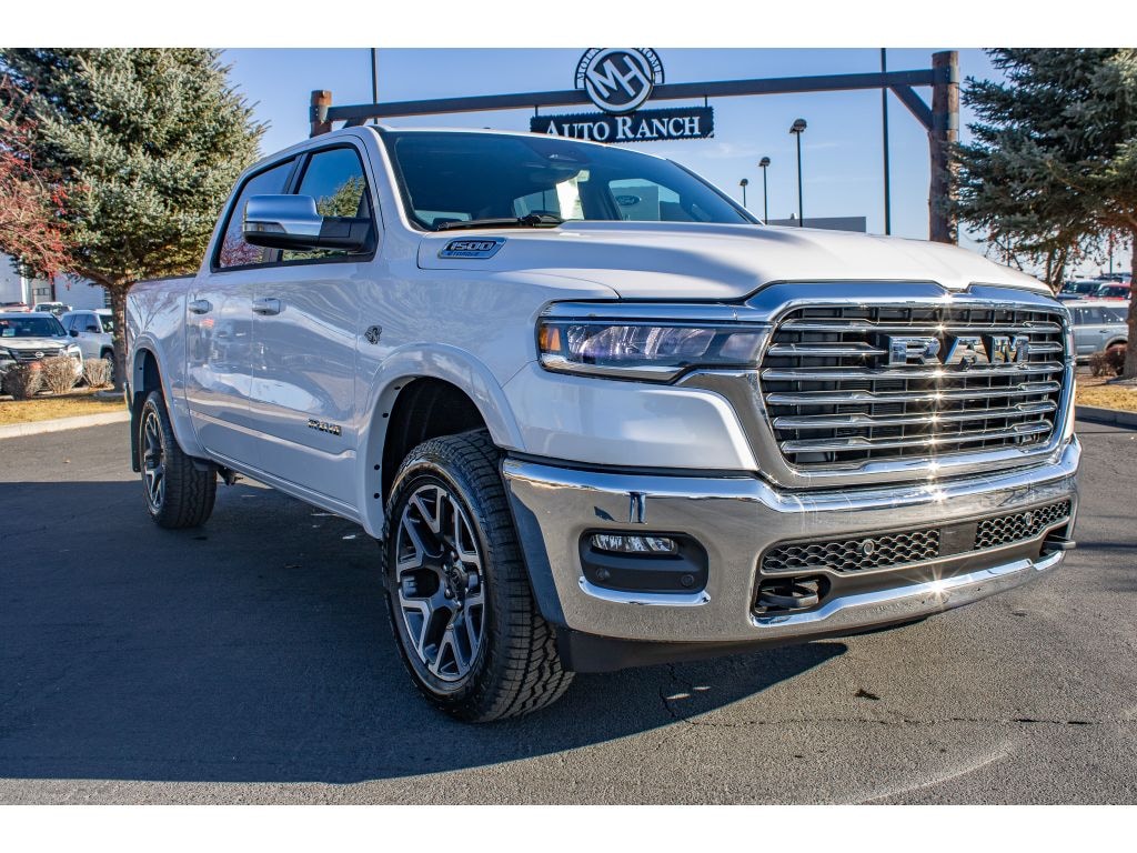 2026 Ram 1500 Laramie 4WD â" Mountain Home, ID. Experience power and refinement with this 5.7L V8 gasoline pickup, expertly equipped for work and weekend adventures. The Laramie trim combines premium leather seats and a heated steering wheel for comfort in every season, while adaptive cruise control adds highway confidence and safety. Seamless smartphone integration is standard with Apple CarPlay and Android Auto, keeping navigation, music, and calls accessible and hands-free. This Ram 1500 Laramie features 4WD capability, rugged towing potential, and a smooth, responsive V8 that balances performance and reliability. The leather interior and upscale trim make it an exceptional choice for drivers who want the utility of a truck without sacrificing comfort. Advanced driver assistance features enhance safety, and modern connectivity keeps you plugged in on the go. Located in Mountain Home, ID, this 2026 Ram 1500 Laramie is competitively priced and advertised as the best price in the area â" a standout value for buyers seeking a premium V8 4WD pickup. Contact us to schedule a test drive or request financing options. Don't miss this opportunity to own a powerful, well-appointed Ram 1500 Laramie built for Idaho roads and beyond.