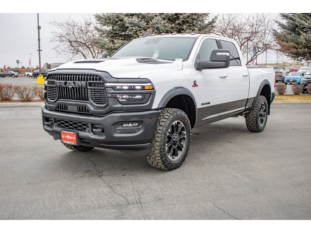 2026 Ram 2500 Rebel 4WD â" Mountain Home ID's best-priced diesel workhorse. Built for towing, hauling and off-road confidence, this bold Ram 2500 Rebel features a robust 6-cylinder 6.7L diesel engine paired with 4-wheel drive to deliver exceptional torque, fuel efficiency and long-haul reliability. If you need capability without compromise, this truck checks every box. Comfort and convenience are premium: spacious leather seats, heated steering wheel and advanced tech make every drive enjoyable. Adaptive Cruise Control keeps highway travel relaxed and safe, while the back-up camera provides clear visibility for parking and hitching. Seamless smartphone integration comes standard with Android Auto, so navigation, music and hands-free calls are at your fingertips. This Ram 2500 Rebel blends rugged capability with refined interior appointments and modern safety features, making it ideal for work sites, towing trailers or weekend adventures across Idaho's varied terrain. Located in Mountain Home, ID, this truck is competitively priced â" the best price available for this model in the area. Financing options and test drives are available; schedule yours today and experience a powerful diesel engine, advanced driver aids and premium comfort in one capable package. Don't miss Mountain Home's best-priced 2026 Ram 2500 Rebel.