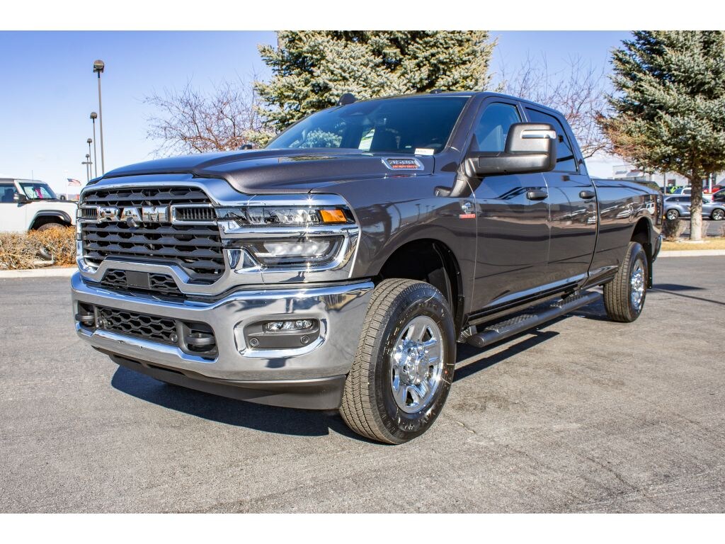 Cold Weather Group: Engine Block Heater; MOPAR Winter Front Grille Cover. Tradesman Level 2A Equipment Group: Convenience Group; Google Android Auto; SiriusXM Radio Service; For Details Visit DriveUconnect.com; For More Info. Call 800-643-2112; Integrated Voice Command with Bluetooth; Emergency Vehicle Alert System (EVAS); Manual Folding Exterior Mirrors; 12 Touchscreen Display; Mirror Running Lights; Exterior 115V AC Outlet; Alexa Built-In; Apple CarPlay; Power-Adjustable Convex Aux Mirrors; Cloth 40/20/40 Bench Seat; Disassociated Touchscreen Display; Bright Wheel Skins; Matte Black Mesh with Chrome Grille; 115-Volt Auxiliary Front Power Outlet; Center Hub; Rear View Auto Dim Mirror; Rear Power Sliding Window; Connectivity - US/Canada; Tinted Acoustic Windshield Glass; GPS Navigation; 4G LTE Wi-Fi Hot Spot; GPS Antenna Input; Bright Rear Bumper; Exterior Mirrors with Heating Element; Chrome Grille Surround; MOPAR Black Tubular Side Steps; SiriusXM with 360L; Global Telematics Box Module; Connected Travel and Traffic Services; Black Exterior Mirrors; 18 X 8.0 Steel Chrome Clad Wheels; Carpet Floor Covering; Off-Road Information Pages; Selectable Tire Fill Alert; Trailer Tow Pages; 400W Inverter; HD Radio; Power Heat Fold Telescopic Mirrors; Uconnect 5 Navigation with 12.0 Display Radio; Exterior Mirrors with Supplemental Signals; Exterior Mirrors Courtesy Lamps; Air Conditioning ATC with Dual Zone Control; Manual Telescoping Mirrors; Power Adjust Mirrors; Front and Rear Floor Mats; Bright Front Bumper; ParkSense Front/rear Park Assist System. Quick Order Package 24A Tradesman. Bed Utility Group: MOPAR Spray in Bedliner; MOPAR Deployable Bed Step; LED Bed Lighting. MOPAR Black Tubular Side Steps. Cloth 40/20/40 Bench Seat. 50 Gallon Fuel Tank. Granite Crystal Met CC. Instrument Panel Mounted Auxiliary Switches. Rear Wheelhouse Liners. Transfer Case Skid Plate Shield. **Equipment listed is based on original vehicle build and subject to change. Please confirm the accuracy of the included equipment by calling the dealer prior to purchase.**