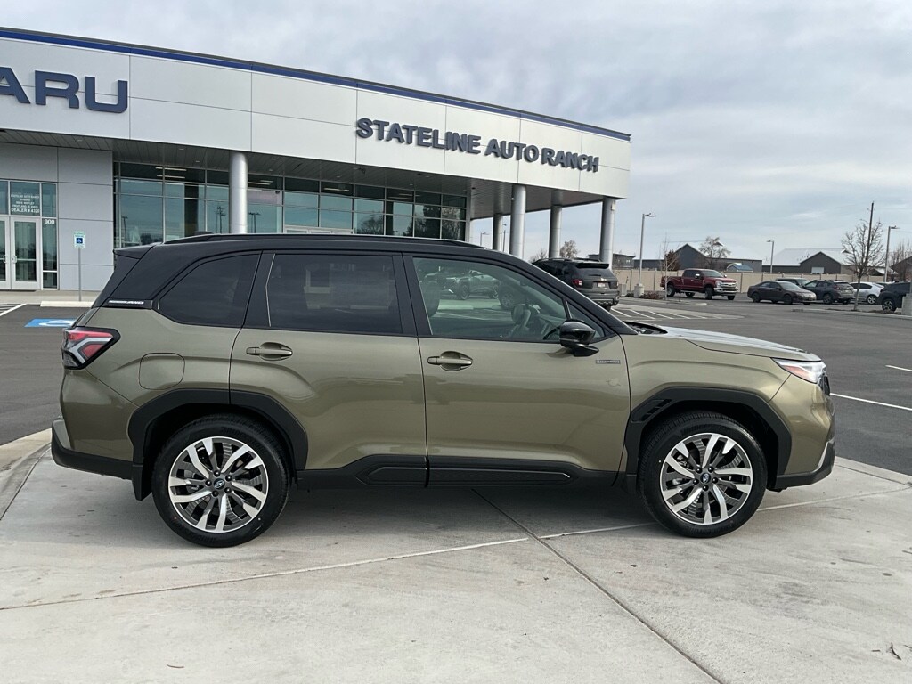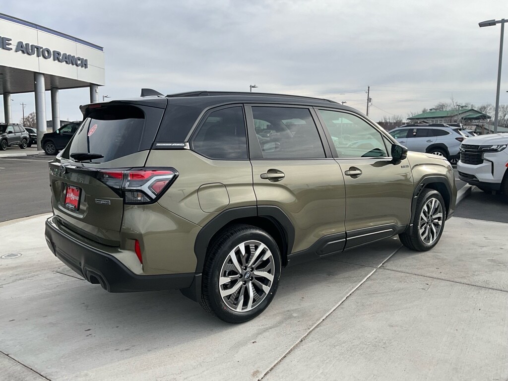 2025 Subaru Forester Touring Hybrid AWD â" located in Fruitland, ID â" offers exceptional value and the best price on a versatile, efficient SUV. Powered by a 4-cylinder 2.5L Full Hybrid Electric (FHEV) powertrain with Subaru's legendary AWD, this Forester Touring Hybrid delivers confident traction, excellent fuel efficiency, and a smooth, responsive ride for daily commutes and weekend adventures. Inside, premium leather seats and thoughtful Touring-level appointments create a comfortable cabin for driver and passengers. Stay connected with Android Auto and an integrated navigation system that makes route planning simple and intuitive. The back-up camera and advanced visibility features provide safer maneuvering in tight spots, while remote start lets you warm up or cool down the interior before you get in. Practical and tech-forward, this Subaru Forester Hybrid blends utility with modern conveniences: roomy cargo capacity, efficient hybrid engineering, and Subaru's reputation for reliability. Whether navigating icy Idaho roads or cruising highways, the AWD system and hybrid efficiency give you confidence and savings at the pump. Located in Fruitland, ID, this vehicle is competitively priced to move quickly â" claimed as the best price in the area â" so you can get into an eco-conscious, capable SUV without compromise. Schedule a test drive today and experience the comfort, technology, and fuel-efficient performance of the 2025 Subaru Forester Touring Hybrid.