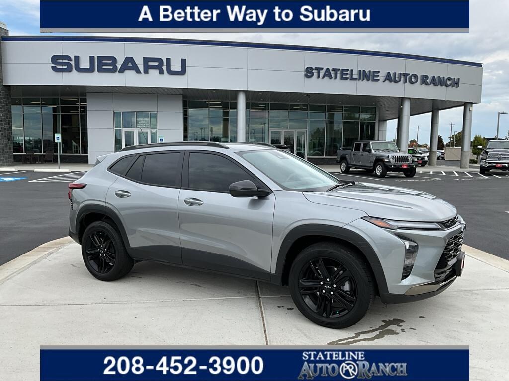 2025 Chevrolet Trax ACTIV â" Fruitland, ID. This low-mileage Chevrolet Trax ACTIV has just 8,705 miles and delivers an exceptional combination of efficiency, safety, and style. Powered by a responsive 3-cylinder 1.2L gasoline engine with front-wheel drive, it offers spirited everyday performance and excellent fuel economy for commuting and weekend adventures. This Chevrolet Trax stands out with CARFAX 1-Owner history, giving you added confidence in its condition and maintenance. The ACTIV trim adds rugged design cues and upgraded features, including a heated steering wheel for cold mornings, hands-free Bluetooth for safe, convenient connectivity, and advanced driver-assist technologies such as lane departure warning and adaptive cruise control to enhance highway comfort and safety. Inside, the cabin is thoughtfully arranged for modern convenience, with intuitive controls and comfortable seating for daily life. The compact footprint makes parking and maneuvering around Fruitland effortless, while the cargo versatility supports shopping, gear, and errands. Priced to sell and advertised as the best price in the area, this Chevrolet Trax ACTIV represents outstanding value given its low mileage and comprehensive feature set. Schedule a test drive in Fruitland, ID, to experience the confident handling, tech-forward amenities, and driving peace of mind this vehicle provides. Financing options and a full CARFAX report are available upon request.