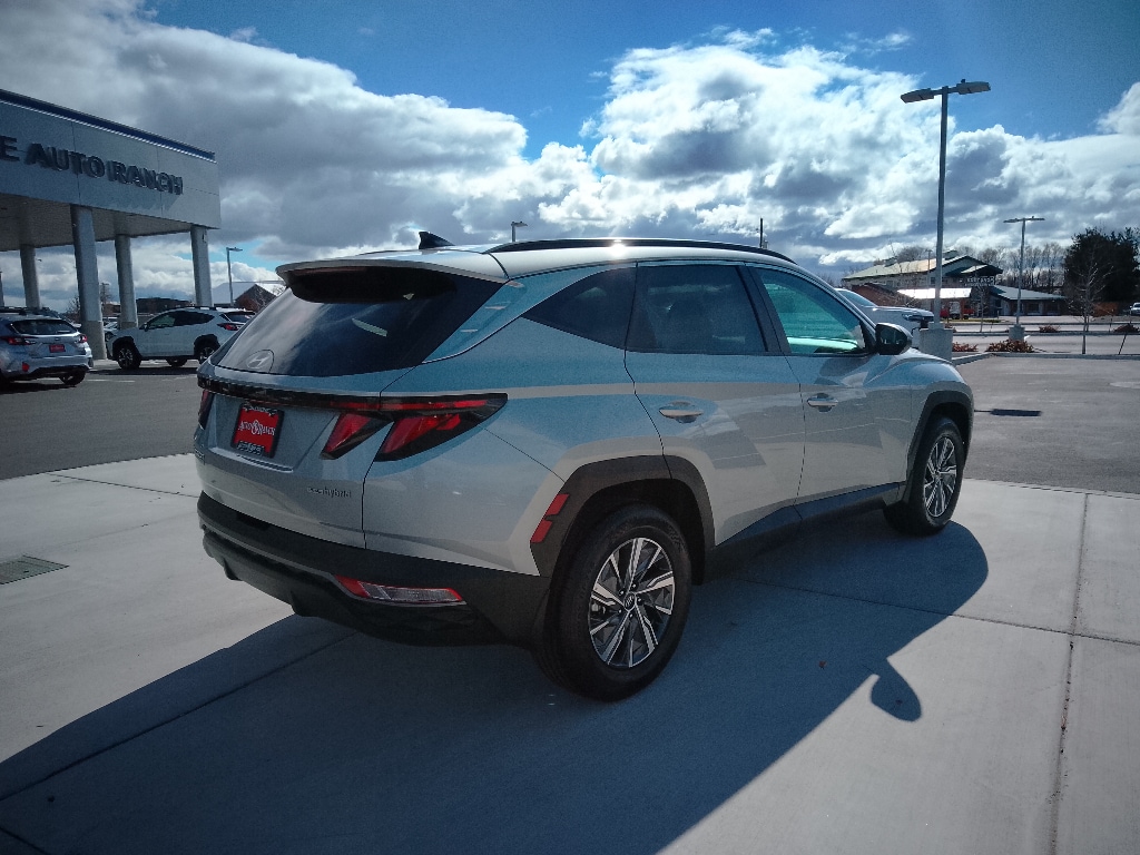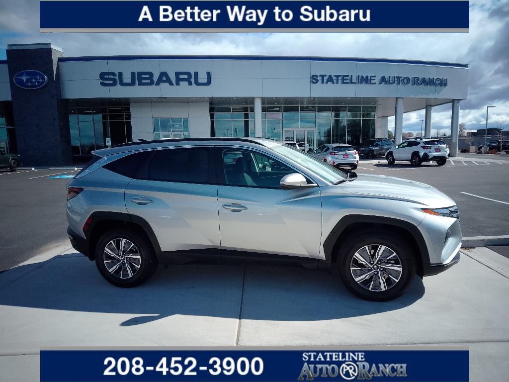 2024 Hyundai Tucson Hybrid Blue â" low mileage, great value, located in Fruitland, ID. This eye-catching Hyundai Tucson Hybrid combines efficiency and capability with its 4WD system and advanced 4-cylinder 1.6L Full Hybrid Electric (FHEV) powertrain, delivering strong fuel economy without sacrificing performance. With just 22,748 miles, this gently pre-owned crossover offers years of reliable driving ahead. Comfort and convenience are highlighted by automatic climate control and remote start, making every drive pleasant whether you're heading to work or exploring Idaho back roads. Stay connected and entertained with seamless Apple CarPlay and Android Auto integration, while the back-up camera enhances safety and confidence when parking or reversing. The Blue exterior presents a modern, refined look that pairs perfectly with a well-maintained interior. The hybrid drivetrain provides smooth acceleration and intelligent energy management for lower running costs and reduced emissions. Four-wheel drive adds traction and stability through changing weather and terrain, giving you versatility for seasonal conditions. Priced competitively â" the best price available for this model in the area â" this Hyundai Tucson Hybrid delivers exceptional value for drivers seeking low mileage, advanced technology, and hybrid efficiency. Visit Fruitland, ID to test drive and see why this 2024 Hyundai Tucson Hybrid is an outstanding choice for practical, eco-conscious driving.