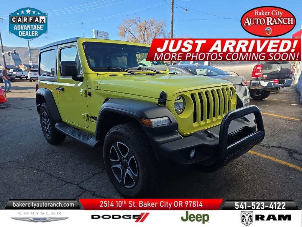 2023 Jeep Wrangler Sport S â" low-mileage adventure-ready SUV in Baker City, OR! This rugged 4WD Jeep Wrangler Sport S packs a peppy 4-cylinder 2.0L gasoline engine with only 5,366 miles, giving you reliable performance and exceptional longevity for daily driving and off-road exploration. Priced to sell, this Jeep Wrangler offers the best price in the area for buyers seeking value without sacrificing capability. Equipped with modern connectivity, the Sport S features Android Auto and Satellite Radio, plus XM Radio for endless entertainment on long drives. A Back-Up Camera boosts safety and parking confidence, and the CARFAX Clean Report confirms a transparent vehicle history for peace of mind. The low mileage means you get near-new condition and extended life from a vehicle built to handle trails, snow, and highway cruising with ease. This Jeep Wrangler wears classic rugged styling and functional designâ"removable tops and doors-ready for open-air cruising, durable interior materials, and a commanding driving position. With 4WD capability, it's ready for Oregon backcountry routes and weekend getaways. Located in Baker City, OR, this Sport S is competitively priced to move quicklyâ"don't miss this opportunity to own a low-mileage, well-equipped Jeep Wrangler with modern tech features and a clean history. Contact us to schedule a test drive and lock in the best price on this 2023 Jeep Wrangler Sport S before someone else takes this adventure-ready gem home.
