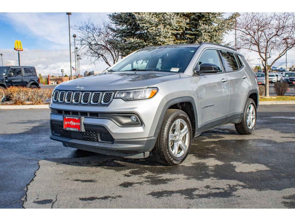 Discover exceptional value with this 2024 Jeep Compass Latitude, now available in Mountain Home, ID. Finished in a stylish exterior and powered by a fuel-efficient 4-cylinder 2.0L gasoline engine with 4WD, this Jeep Compass delivers confident handling on pavement and capable traction when the road gets rough. With only 35,712 miles and CARFAX 1-Owner history, this well-maintained SUV offers peace of mind and reliability for daily driving and weekend adventures. Equipped with sought-after features, the Latitude includes Remote Start for convenience in any season and Android Auto integration to keep your smartphone connected for navigation, music, and messaging. Safety-focused technologies such as Forward Collision Warning enhance driver awareness, while Hands-Free Bluetooth provides seamless, phone-free communication. The comfortable interior and user-friendly controls make every drive relaxed and enjoyable. Priced competitively as the best price in the area, this Jeep Compass represents a smart purchase for buyers seeking a capable compact SUV with modern tech and safety features. Whether you commute through town or explore nearby trails, the 2024 Jeep Compass Latitude pairs efficiency with Jeep's rugged capability. Visit our Mountain Home, ID lot to test drive this CARFAX 1-Owner Jeep Compass and experience its features firsthand. Don't miss your chance to own a dependable, feature-rich SUV at an unbeatable price.