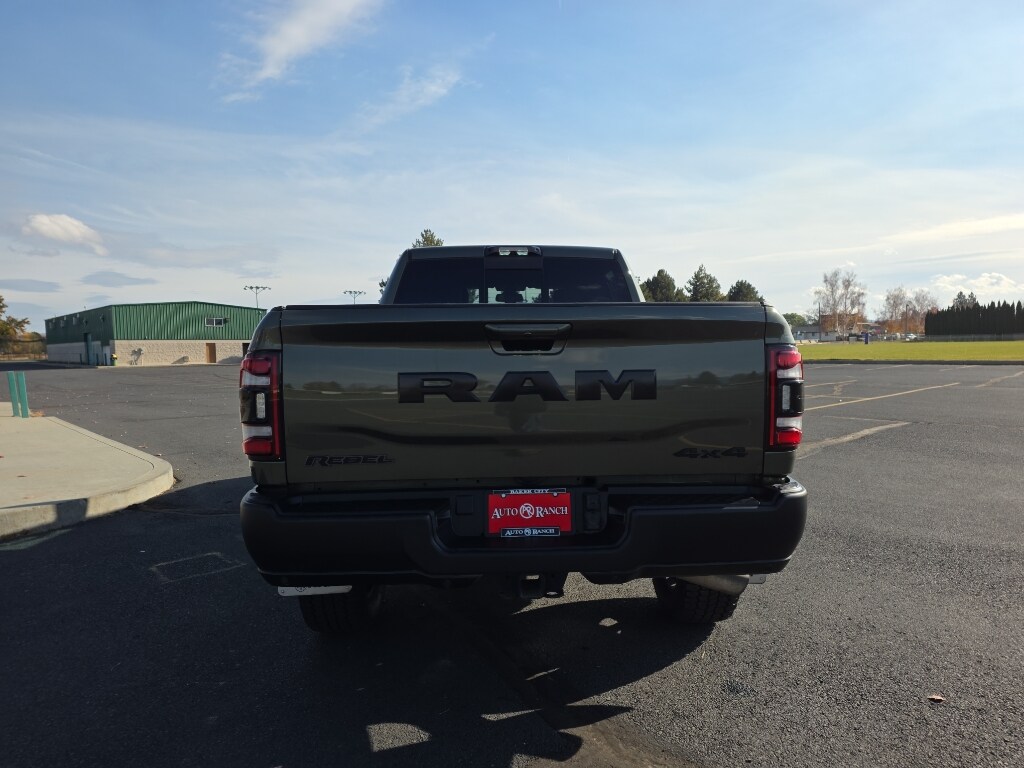 Towing Technology Group: Center Stop Lamp with Cargo View Camera; Surround View Camera System; Blind Spot and Cross Path Detection; Trailer Reverse Guidance. Quick Order Package 2HR Rebel: Rebel Suspension; Instrument Cluster Theme 2 - Rebel; Michelin Brand Tires; 20 X 8.0 Black Diamond Cut Aluminum Wheels; Conventional Differential Front Axle; 4x4 Badge; 220 Amp Alternator; Electric Shift-On-the-fly Transfer Case; Rebel Instrument Panel Badge; Painted Semi-Texture Film Instrument Panel Bezels; Limited Slip Rear Differential with Electronic Lock; Rebel Badge; 18 Steel Spare Wheel. Level 1 Equipment Group: Google Android Auto; SiriusXM Radio Service; Power Adjustable Pedals with Memory; For Details. Visit DriveUconnect.com; For More Info. Call 800-643-2112; Integrated Voice Command with Bluetooth; 12 Touchscreen Display; Auto Power-Folding Mirrors; Mirror Running Lights; Alexa Built-In; Security Alarm; Apple CarPlay; Power Adjustable Convex Aux Mirrors; Premium Overhead Console; Forward and Reverse Utility Lights; 9 Alpine Speakers with Subwoofer; Disassociated Touchscreen Display; LED Interior Lighting; LED Dome Lamp with On/off Switch; Universal Garage Door Opener; 2nd Row in Floor Storage Bins; Sun Visors with Illuminated Vanity Mirrors; Rear Window Defroster; Rain Sensitive Windshield Wipers; Rear Power Sliding Window; Connectivity - US/Canada; Body Color Door Handles; GPS Navigation; 4G LTE Wi-Fi Hot Spot; GPS Antenna Input; Overhead LED Lamps; Exterior Mirrors with Heating Element; Auto Dim Exterior Mirror; SiriusXM with 360L; Global Telematics Box Module; Connected Travel and Traffic Services; Black Exterior Mirrors; Off-Road Information Pages; Selectable Tire Fill Alert; Trailer Tow Pages; HD Radio; Uconnect 5 Navigation with 12.0 Display Radio; Power Heated Fold Telescopic Mirrors with Memory; Exterior Mirrors with Supplemental Signals; Sport Performance Hood; Exterior Mirrors Courtesy Lamps; Remote Proximity Keyless Entry; Auto High Beam Headlamp Control; Exterior Mirrors with Memory; Power Adjust Mirrors; Front Door Accent Lighting; Power Telescoping Mirrors; Leather-Faced Bucket Seats; MOPAR Front and Rear Rubber Floor Mats; Auto Dim Exterior Passenger Mirror; Rear Door Accent Lighting; Auto Adjust in Reverse Exterior Mirrors. 9 Alpine Speakers with Subwoofer. Blind Spot and Cross Path Detection. Center Stop Lamp with Cargo View Camera. Olive Green Pearlcoat. Olive Green Pearlcoat. Security Alarm. **Equipment listed is based on original vehicle build and subject to change. Please confirm the accuracy of the included equipment by calling the dealer prior to purchase.**